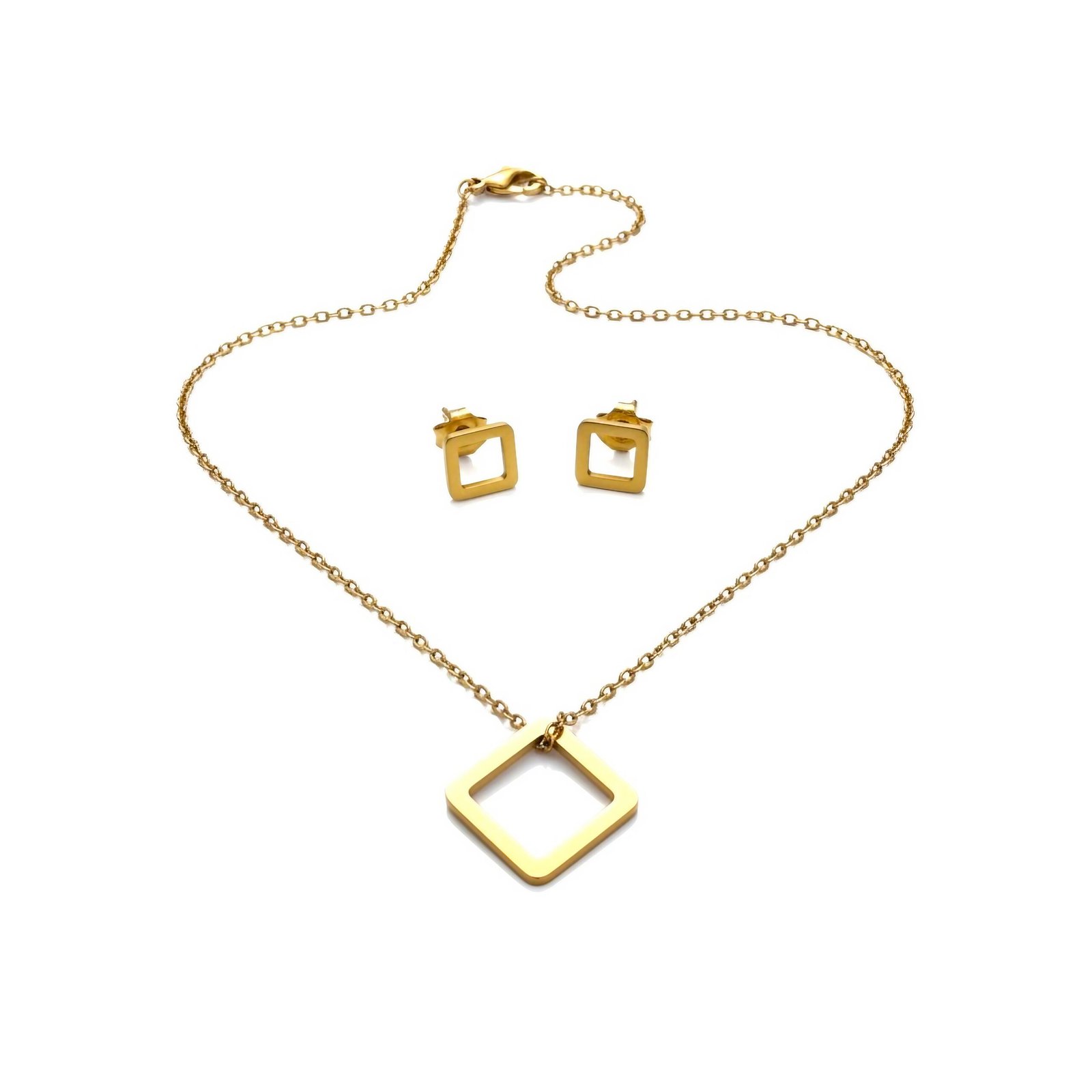 The Minimal Square Necklace & Earrings Set celebrates the beauty of clean lines and timeless minimalism.